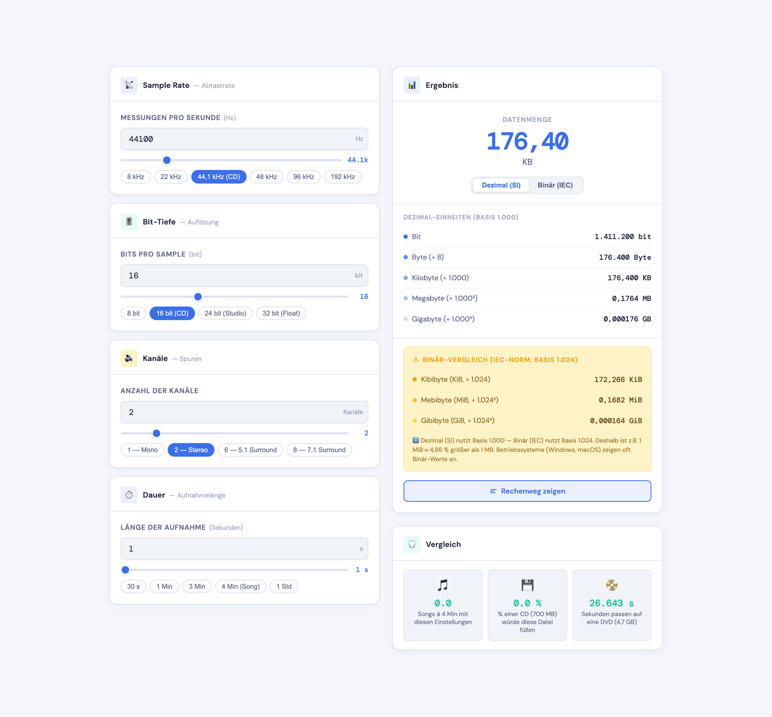 Audio-Datenmenge-Rechner
