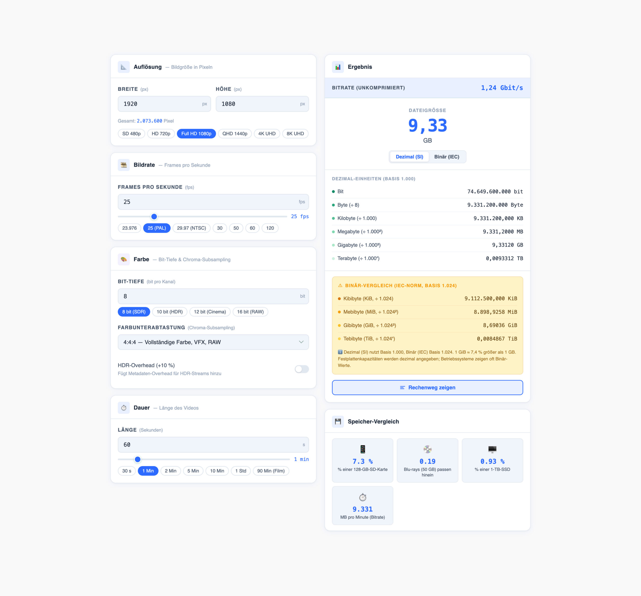 Videogrößen-Rechner