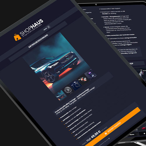 Unser professionelles Design und unsere eBay-Vorlagen eignen sich ideal für alle Branchen, z.B. Mode, Fashion, Möbel, Deko, Accessoires, Schmuck, Autos, Handwerk, Technik, Dienstleistung, Technologie, Unterhaltung und vieles mehr. Nutzen Sie unsere attraktive eBay-Vorlage und lassen Sie Ihr Ihre Angebote im Mittelpunkt erscheinen.
